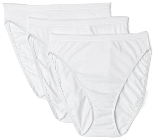 Hanes Ultimate Women's 3-Pack Cotton Hi-Cut Brief Panties, White, 9