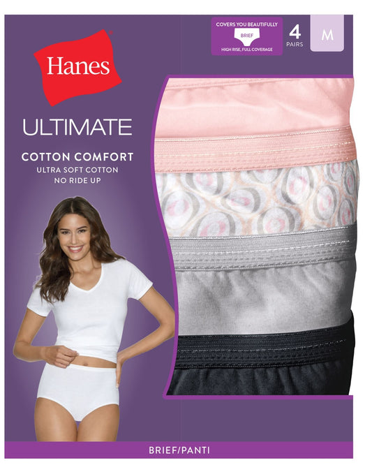 Hanes Ultimate Women's 4-Pack Cotton Hi-Cut Panties, Assorted Color, 7