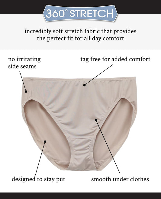 Fruit of the Loom Women's 5 Pack Microfiber Hi-Cut Panties, Multicolor, 10