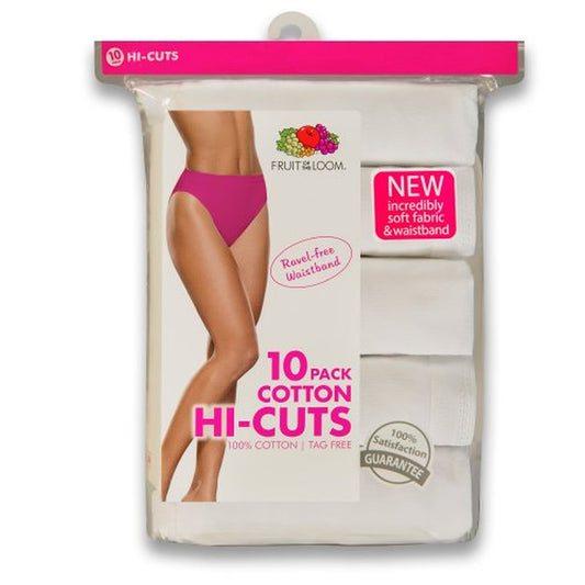 Fruit of the Loom Women's 10m pack Cotton Hi-Cut Brief, White, 9