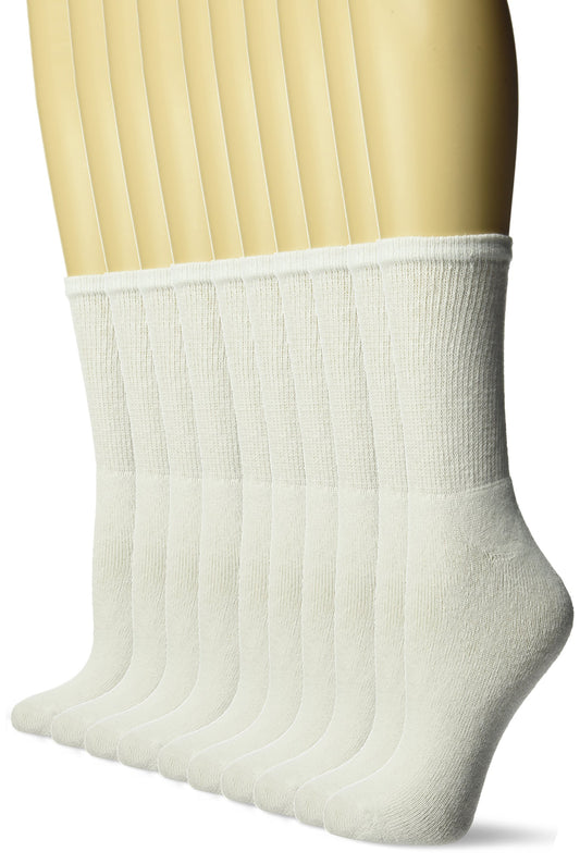 Fruit of the Loom Women's 10 Pack Cushioned Crew Socks, Whites, Shoe Size: 4-10