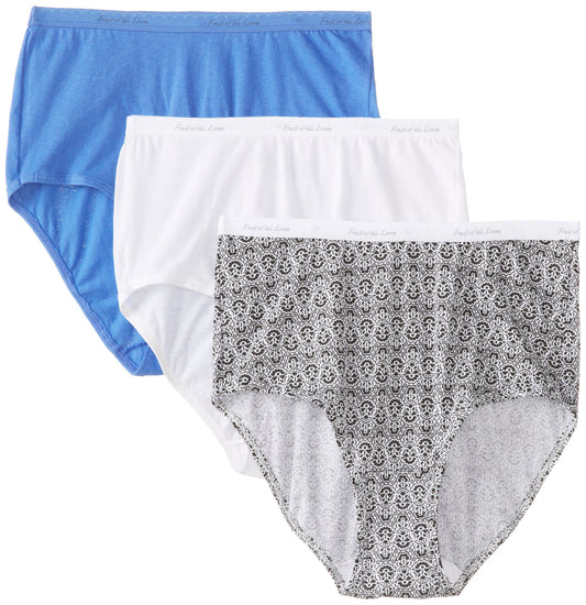 Fruit of the Loom Women's 3 Pack Assorted Cotton Brief Panties, Assorted, 8