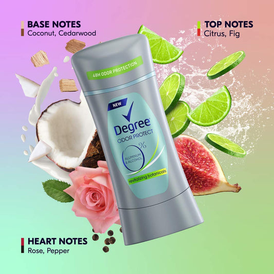 Degree 0% Aluminum Free Deodorant 48H Odor Protection Revitalizing Botanicals Deodorant for Women 2.6 oz