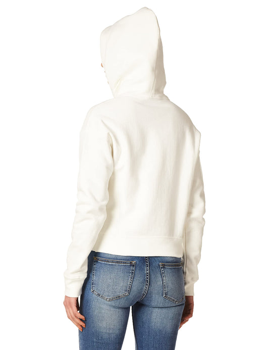 Champion Women's Reverse Weave Hoodie, Script Logo, White-Y07781, Small