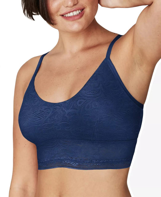 Maidenform Women's All-Over Lace Longline Bralette, Navy, X-Large