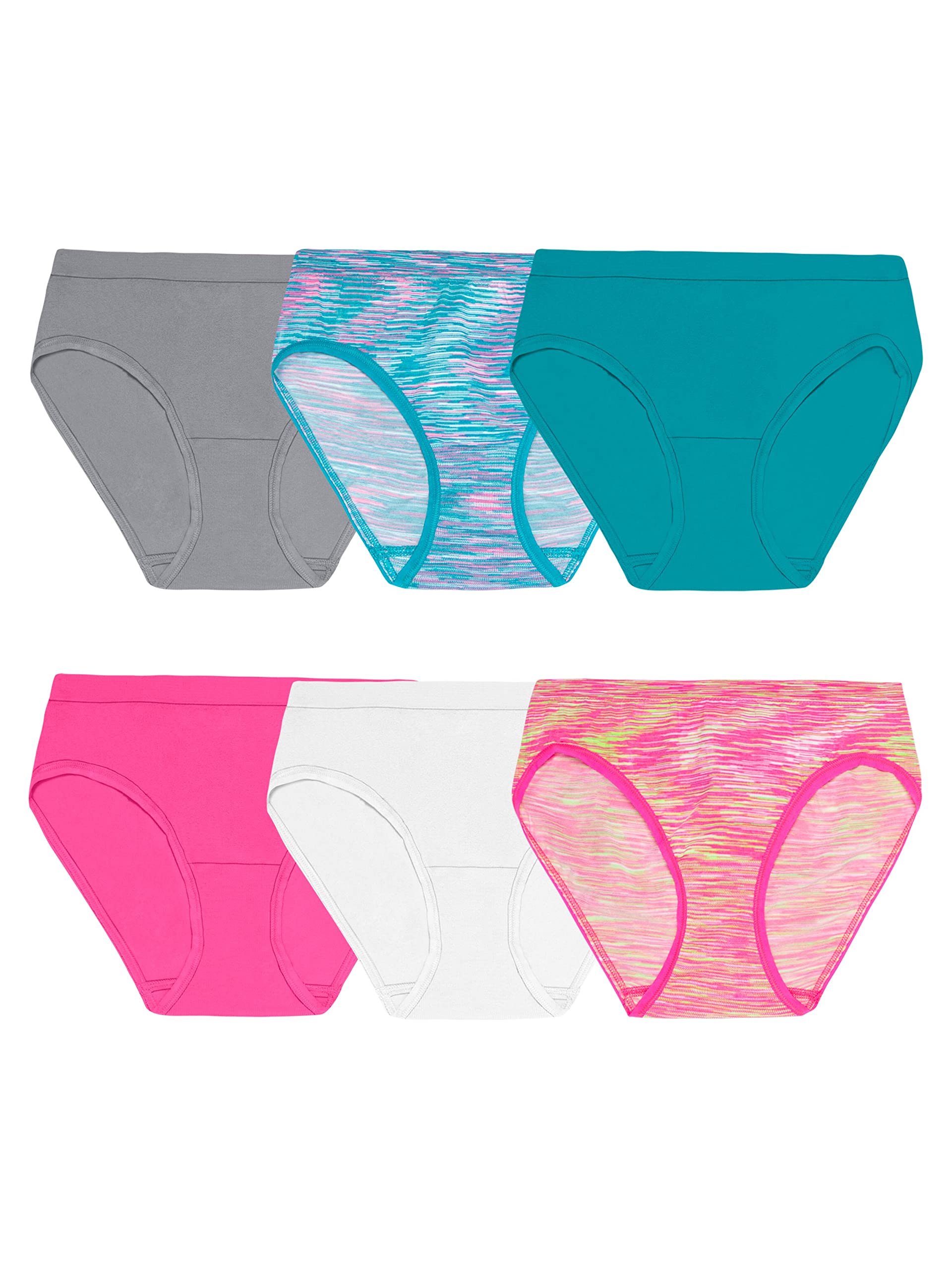 Fruit of the Loom girls Seamless Multipack Underwear, Hipster - 6 Pack Assorted, 8 US