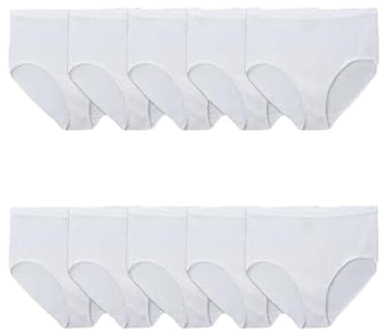 Fruit of the Loom Women's Eversoft Underwear, Tag Free & Breathable, Available in Plus Size, Brief-Cotton-6 Pack-White, 9