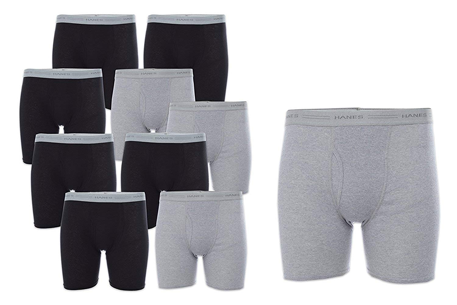 Hanes Men's 10-Pack Boxer Briefs with Comfort Flex Waistband, Black/Grey, Small