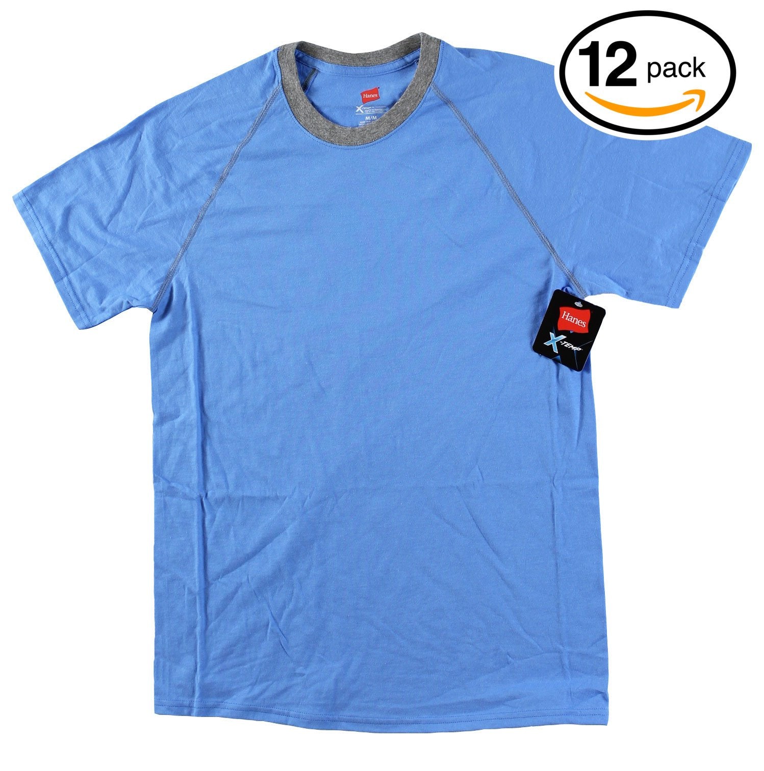 Hanes Men's FreshIQ Crew T-Shirt (Light Blue & Grey, X-Large)