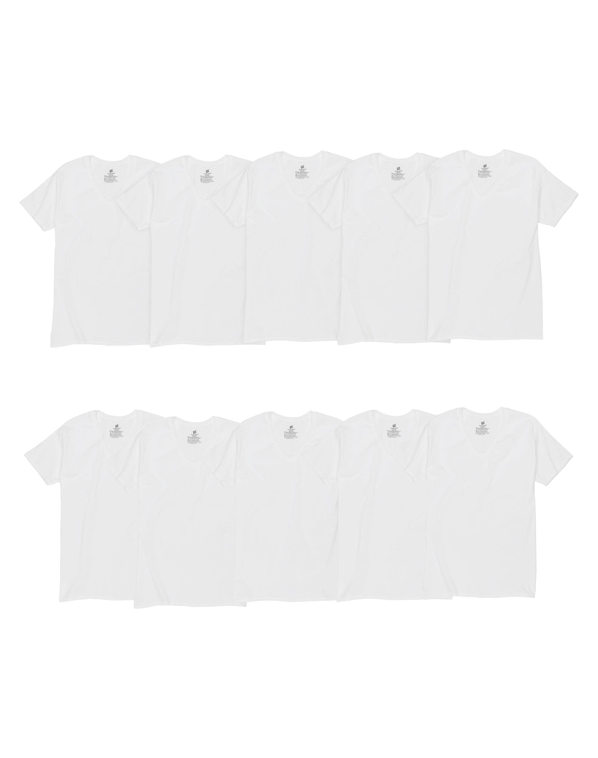 Hanes Men's White V-Neck Super Value 10-Pack, Best Cotton Undershirts, Stay-Tucked T-Shirts