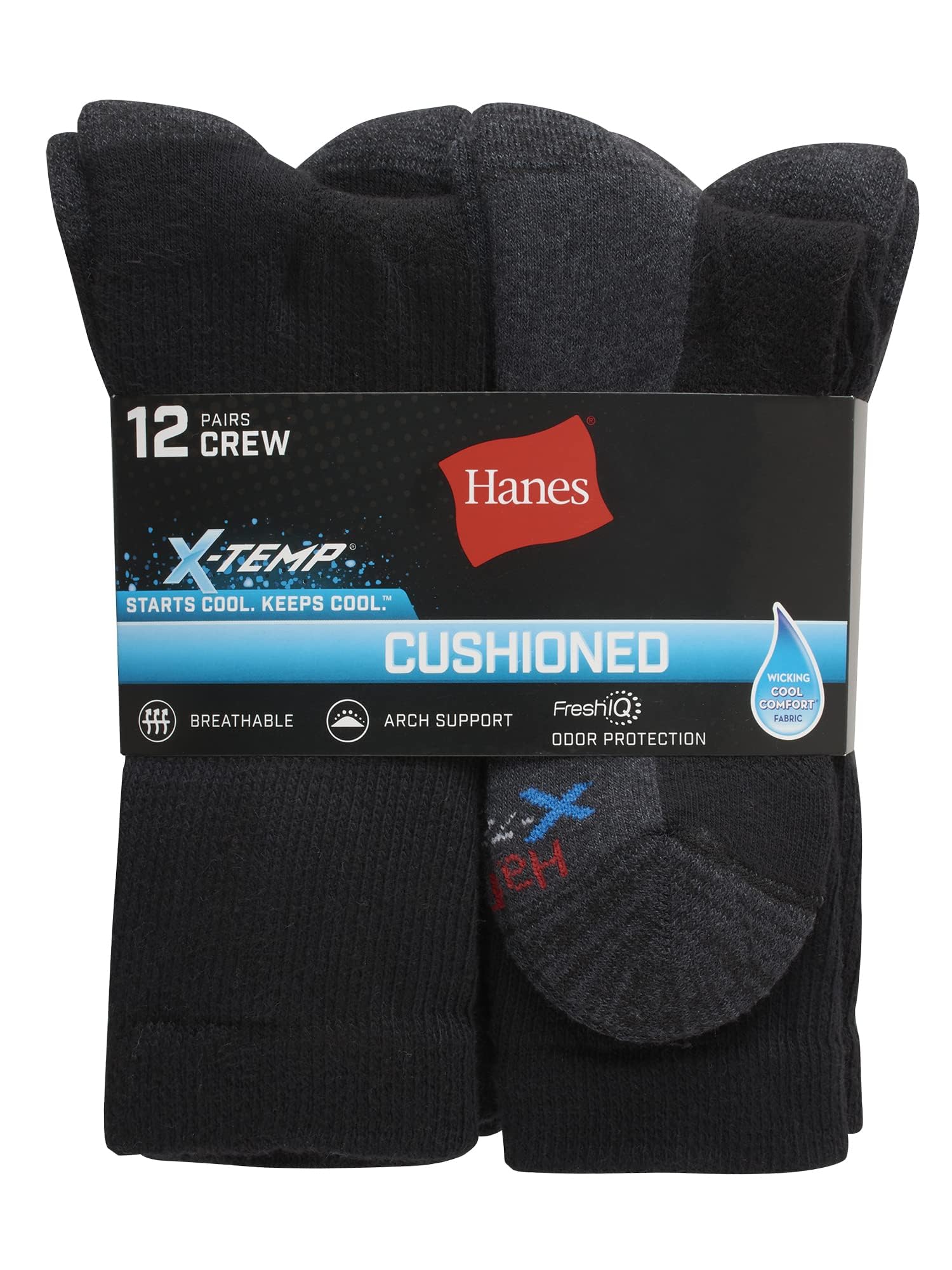 Hanes mens X-temp Cushioned Crew 12-pair Pack, Available in Big & Tall Casual Sock, Black, 12 14 US