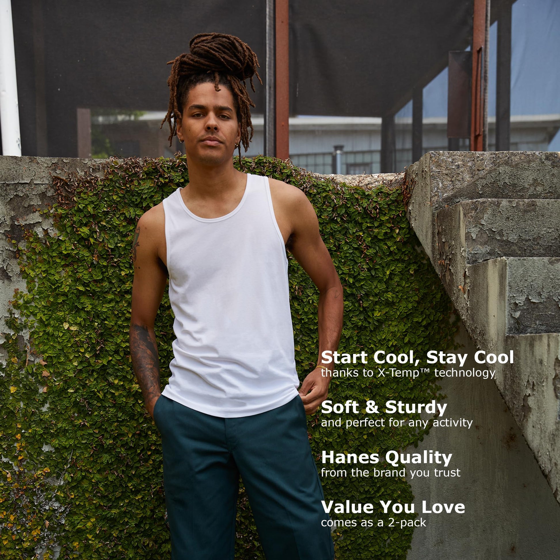 - 2-PACK CONVENIENCE -This value pack comes with 2 Hanes men’s tank shirts in various solid colors for stock-up ease.